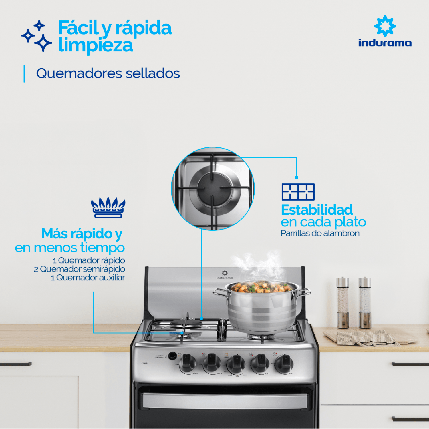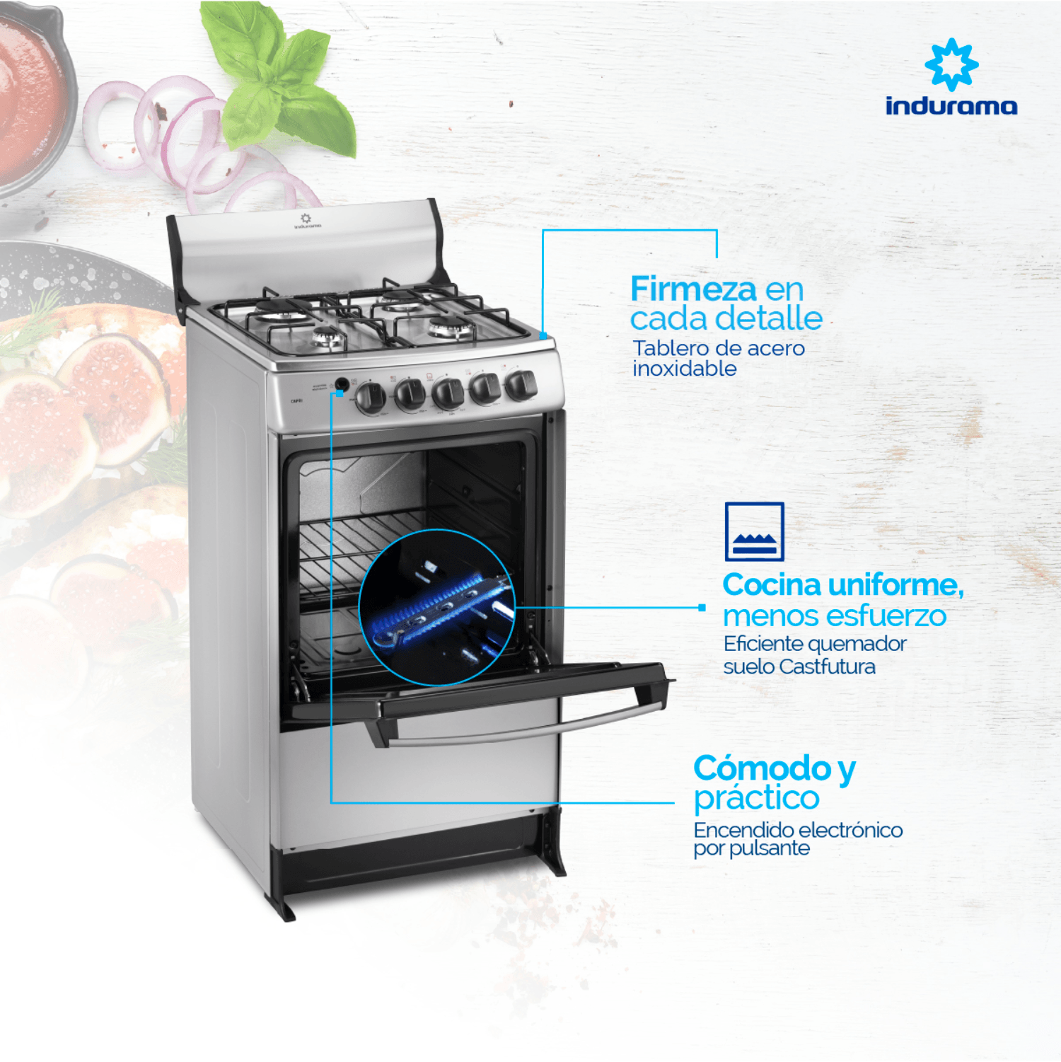 Estufa de Piso Indurama 50cm 4 Puestos a Gas Natural Croma CAPRI