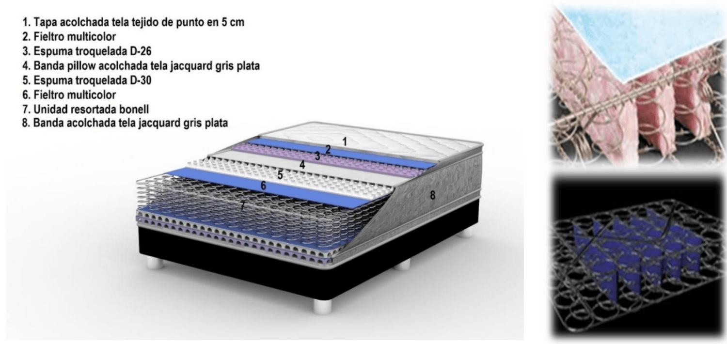 Doble sistema pillow top tela gris plata