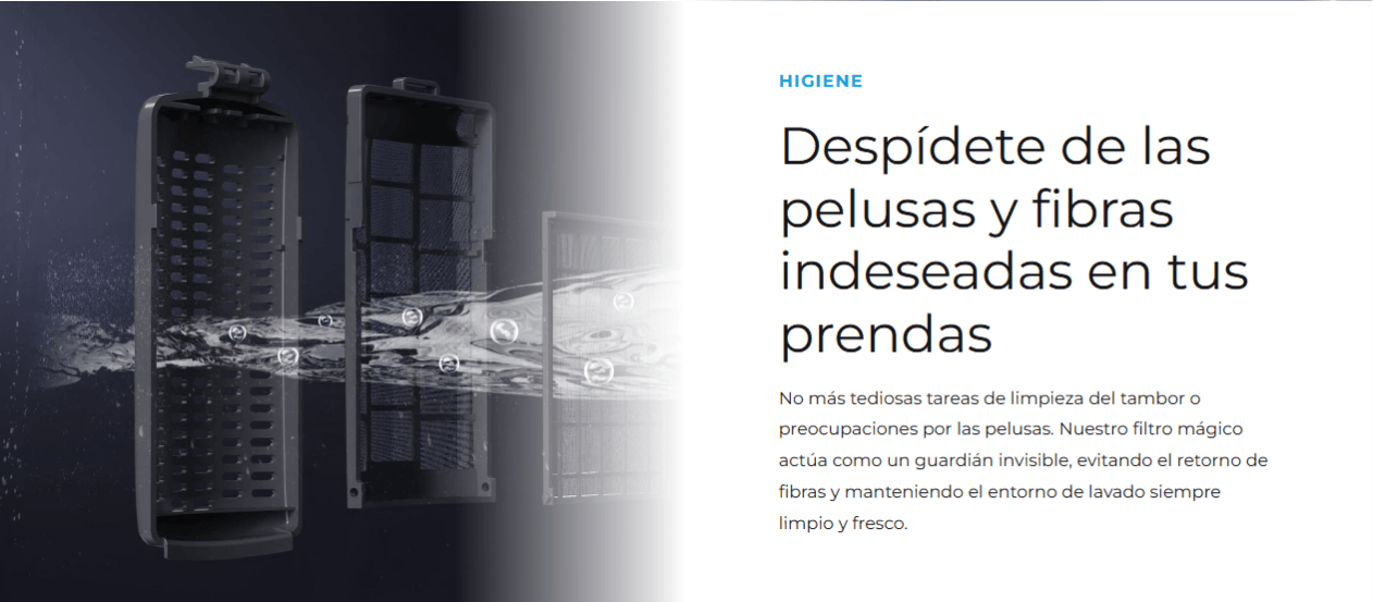 Limpieza profunda 360°, bajo desgaste y mejor cuidado para la ropa