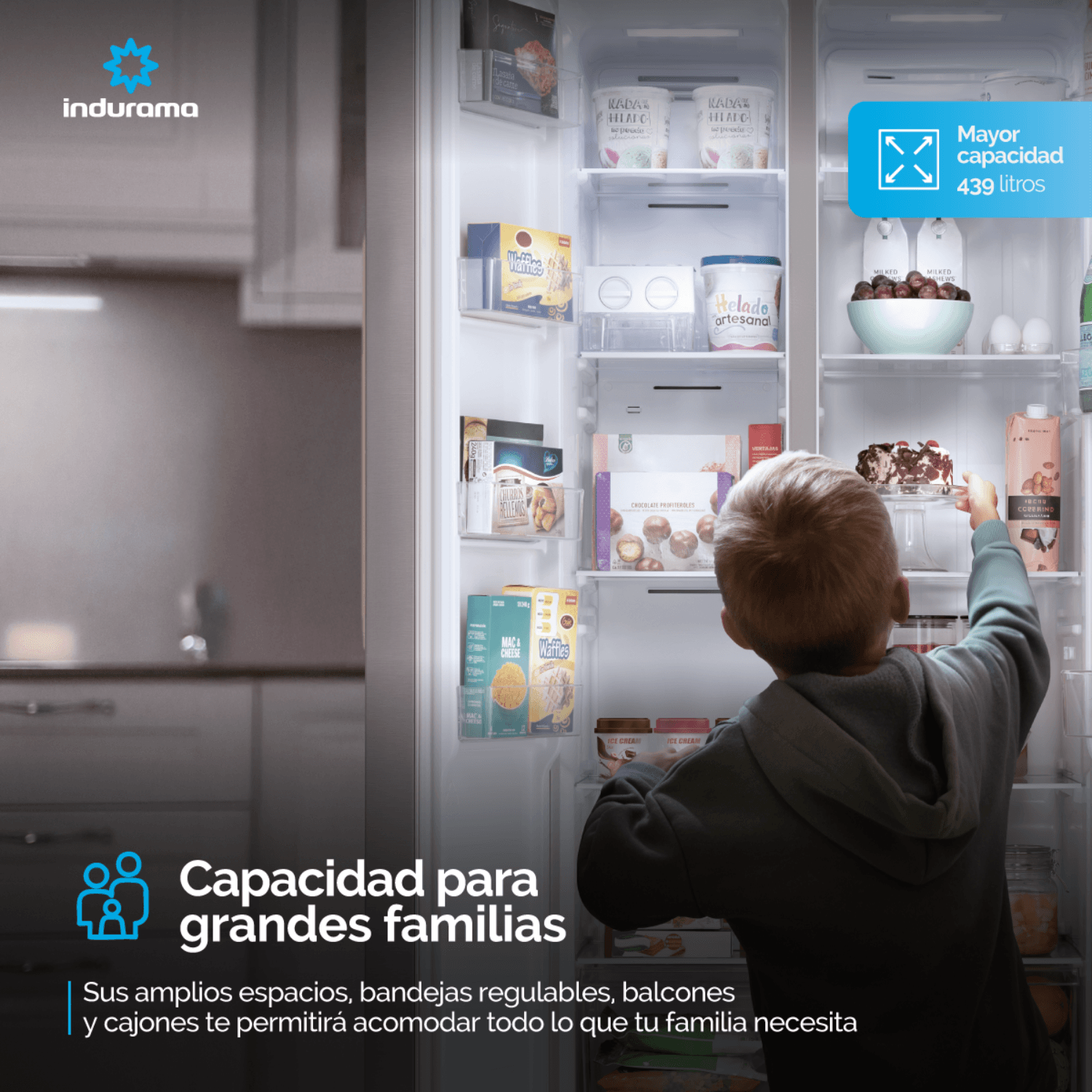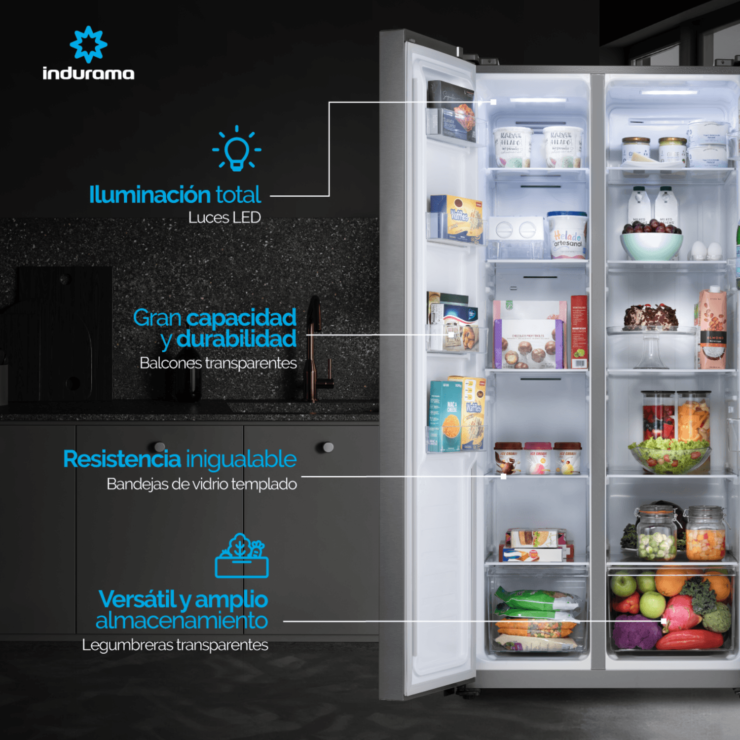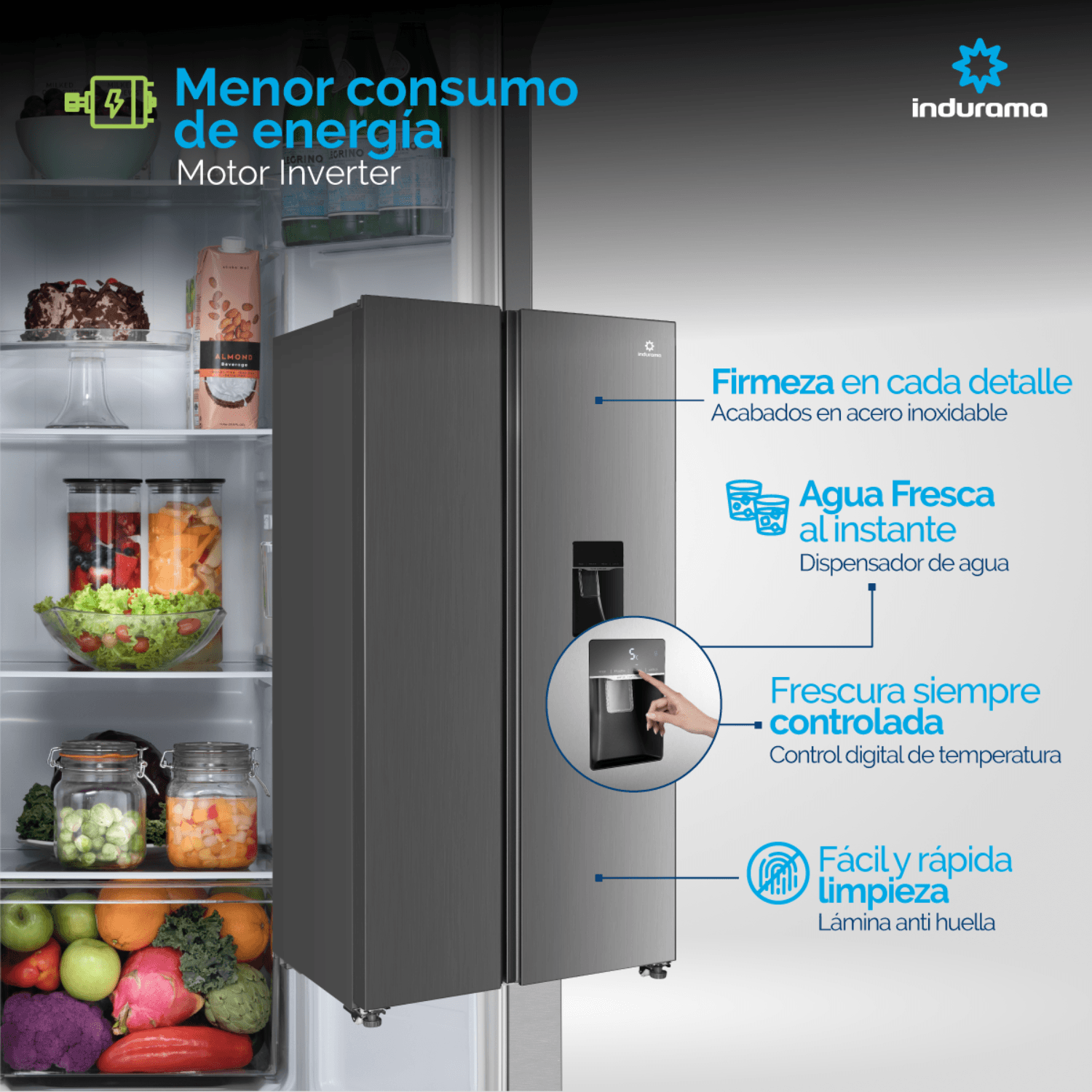 Nevecón Indurama Side By Side 439 Lts. Netos Inverter Panel Digital Externo Croma RI7469 CROMA