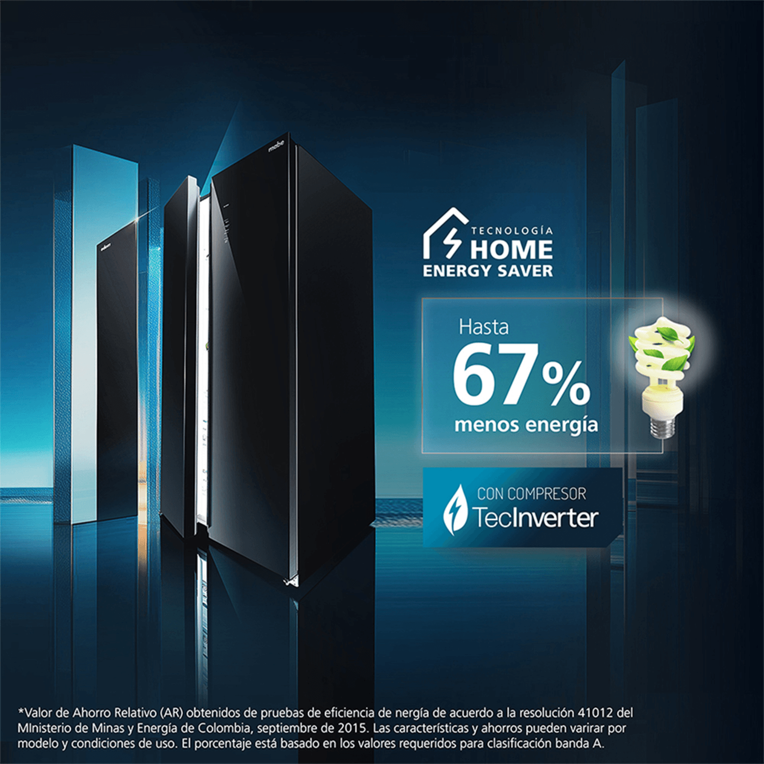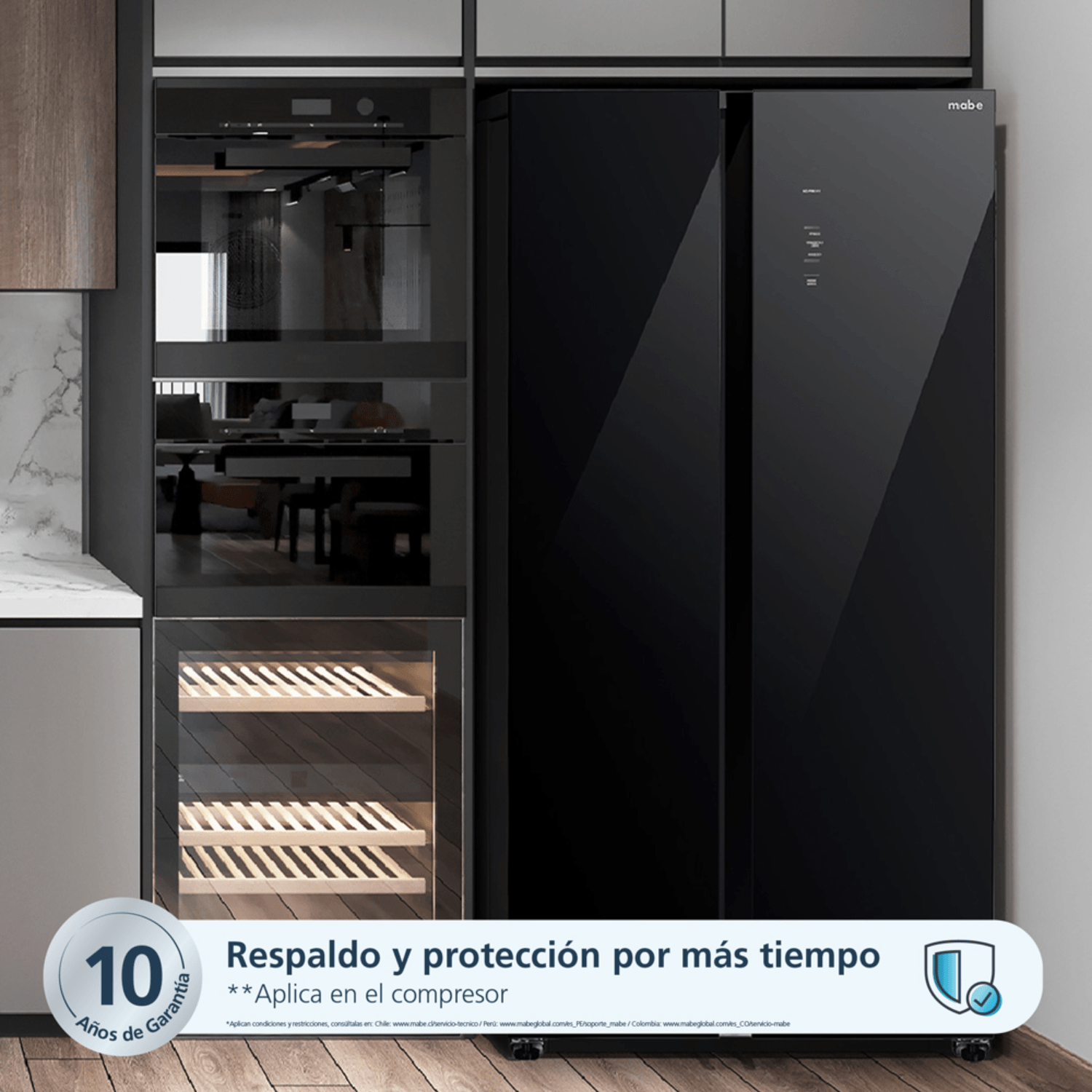 Nevecón Mabe Side By Side 631 Lts. Brutos Inverter Panel Digital Externo Black Glass MSL631LKLNG0