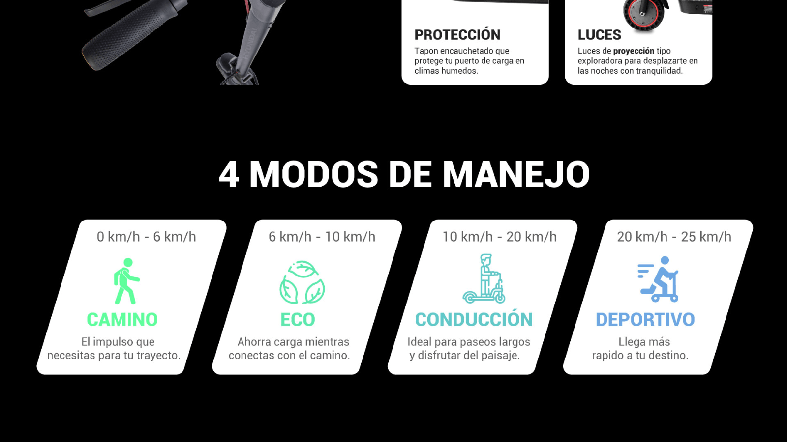Patineta Eléctrica Hyundai Scooty Agil Max Balanty 400W Modelo 2026 Negro-Rojo