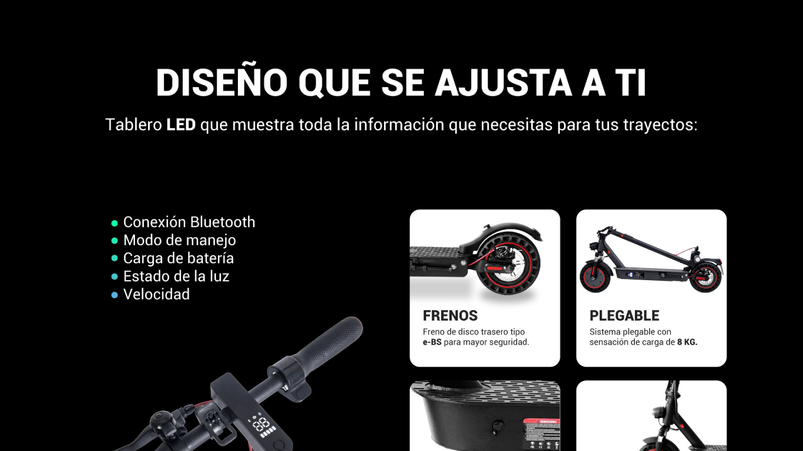 Luces: LED delanteras y traseras direccionales integradas