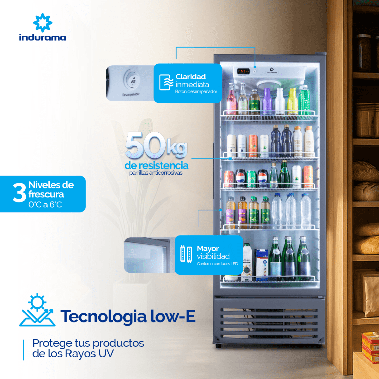 3 niveles de temperatura desde 0 °C a 6 °C